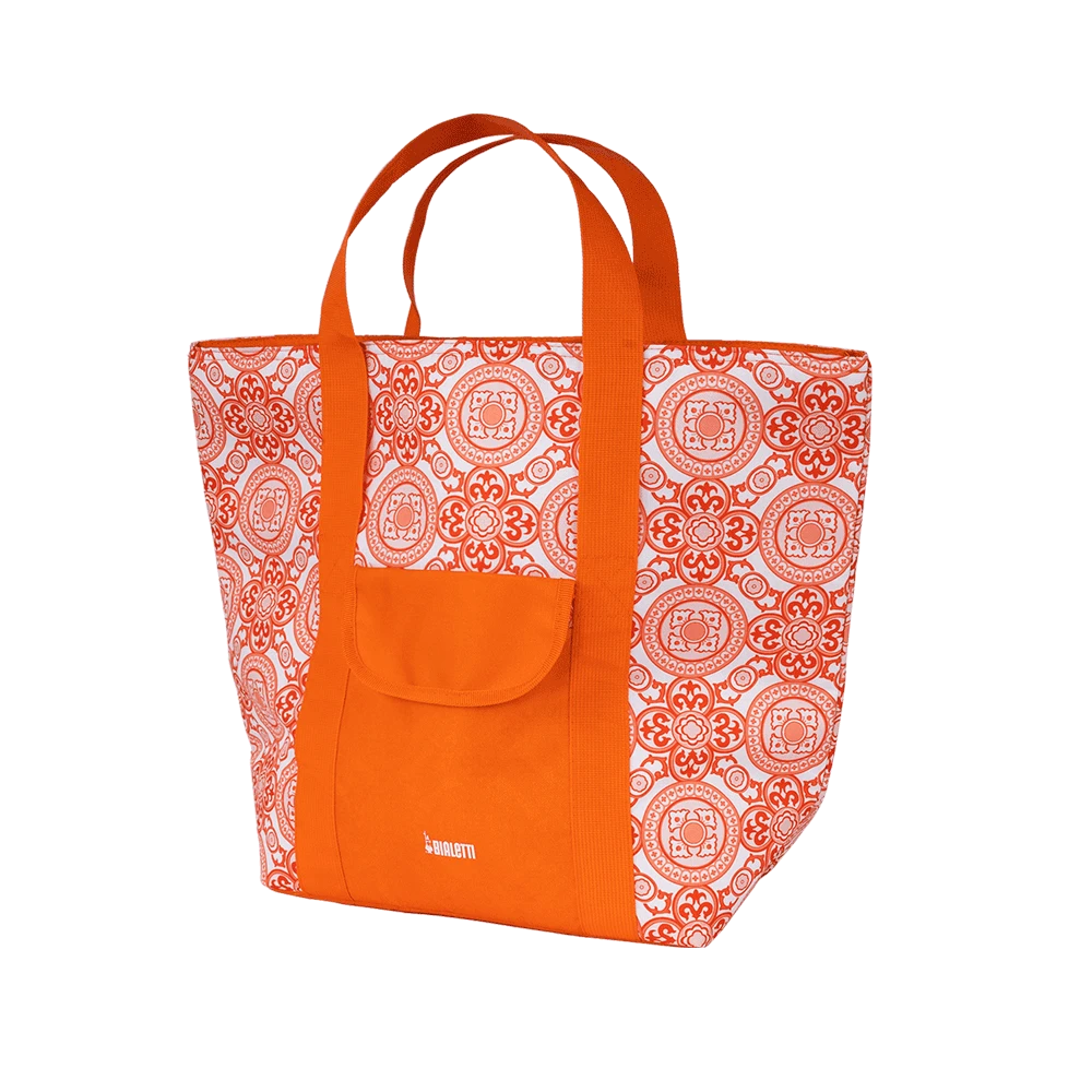 La borsa termica Bialetti, in questa nuova limited edition, è impreziosita dalle trame che rievocano le tradizionali maioliche e si colora con le tonalità calde del tramonto.
