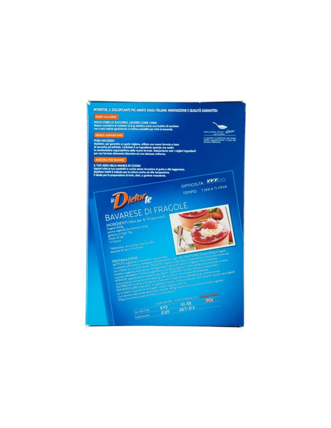 MyDietor, per garantire un gusto migliore, utilizza una nuova formula a base di saccarina ed eritritolo. L’eritritolo è un ingrediente speciale che esalta le caratteristiche organolettiche della nuova formula. Selezioniamo solo i migliori ingredienti per una formula altamente bilanciata ed una dolcezza uniforme.