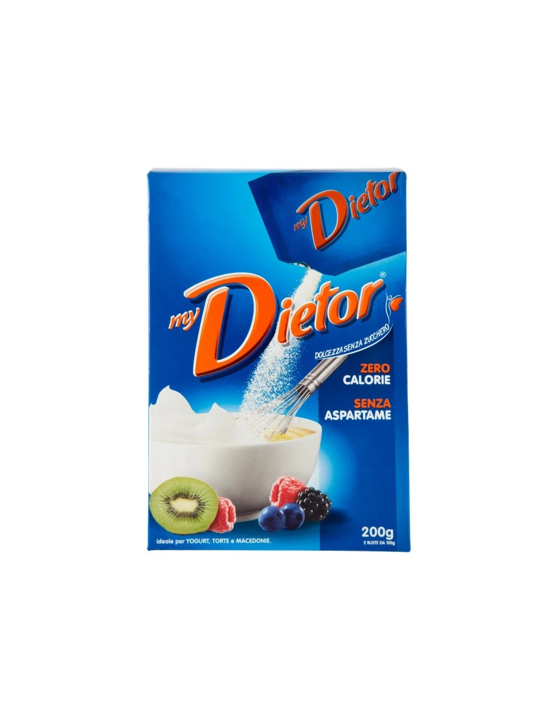 MyDietor può essere utilizzato in tutti i programmi alimentari in cui si voglia ridurre l’apporto calorico giornaliero, nonché nell’alimentazione di coloro che vogliono limitare l’assunzione di saccarosio. Infatti mezzo cucchiaino di myDietor (0,8 g) dolcifica un caffè come un bustina di zucchero, ma apporta 0 calorie (Dietor 0 kcal, bustina da 6 grammi di zucchero: 24 Kcal).