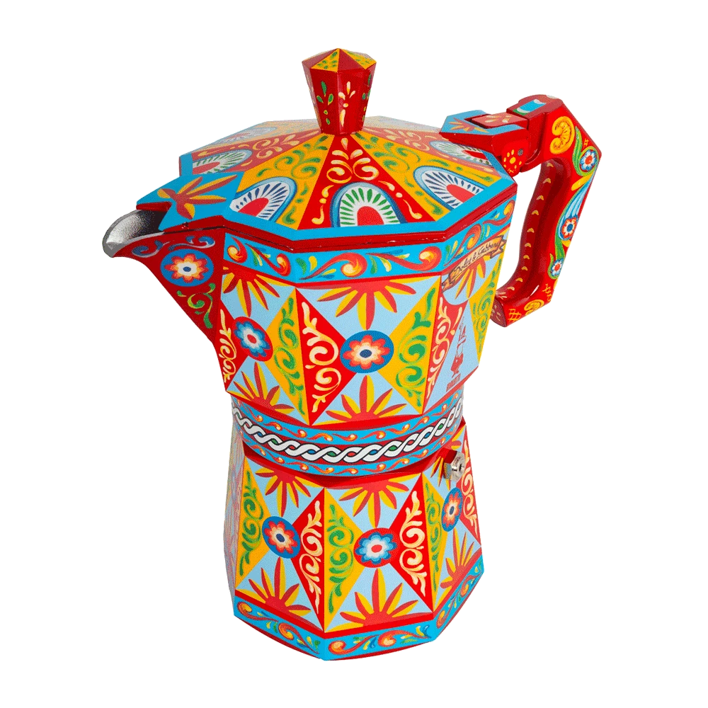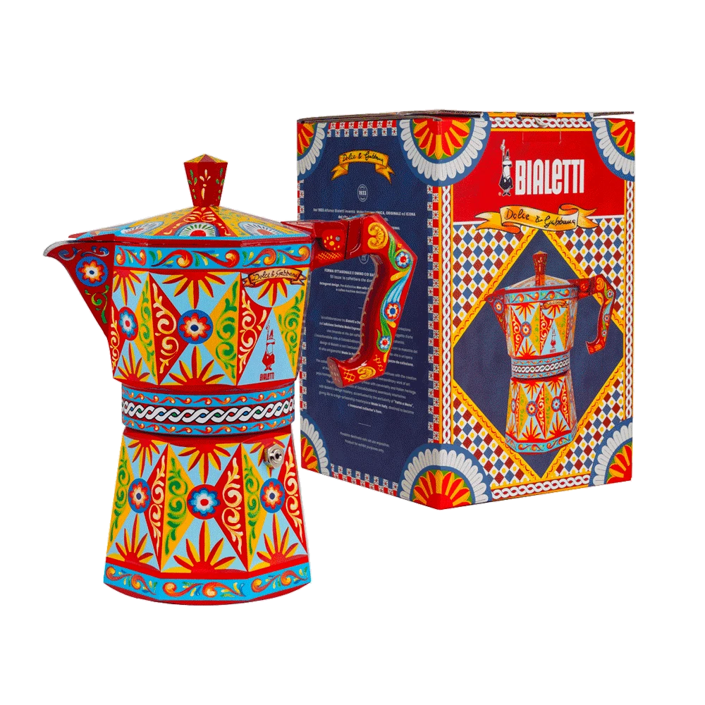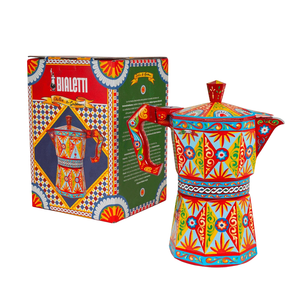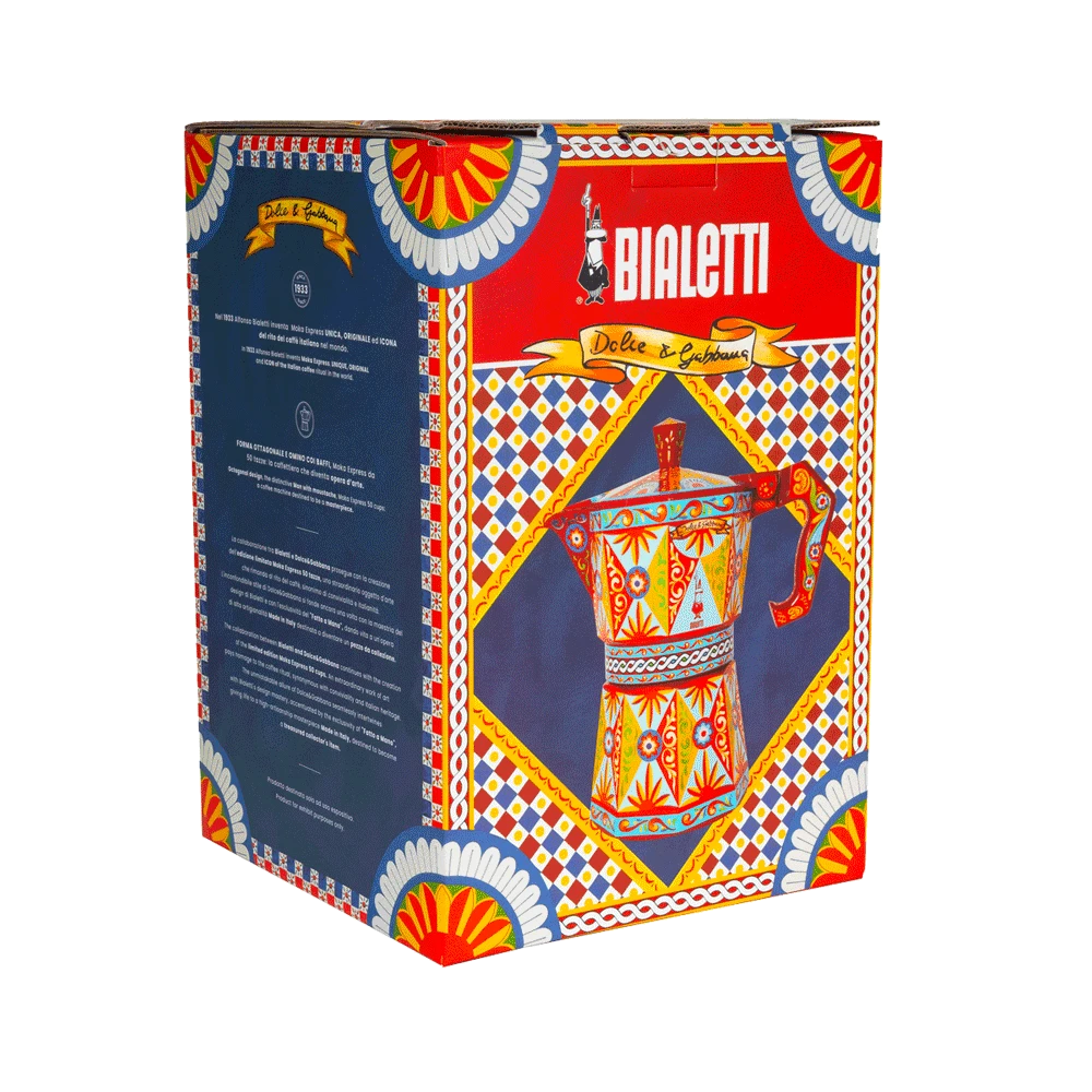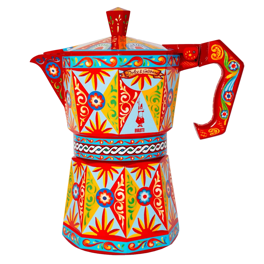 Due icone del Made in Italy si incontrano per celebrare la bellezza del rito del caffè italiano, da sempre simbolo di convivialità. Nasce così la limited edition Moka Express Carretto Siciliano 50 tazze: uno straordinario oggetto d’arte in cui l’inconfondibile stile di Dolce&Gabbana si fonde con la maestria del design Bialetti e con l’esclusività del “fatto a mano”, dando vita ad un’opera di alta artigianalità destinata a diventare un pezzo da collezione.