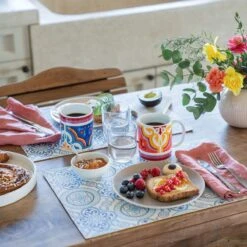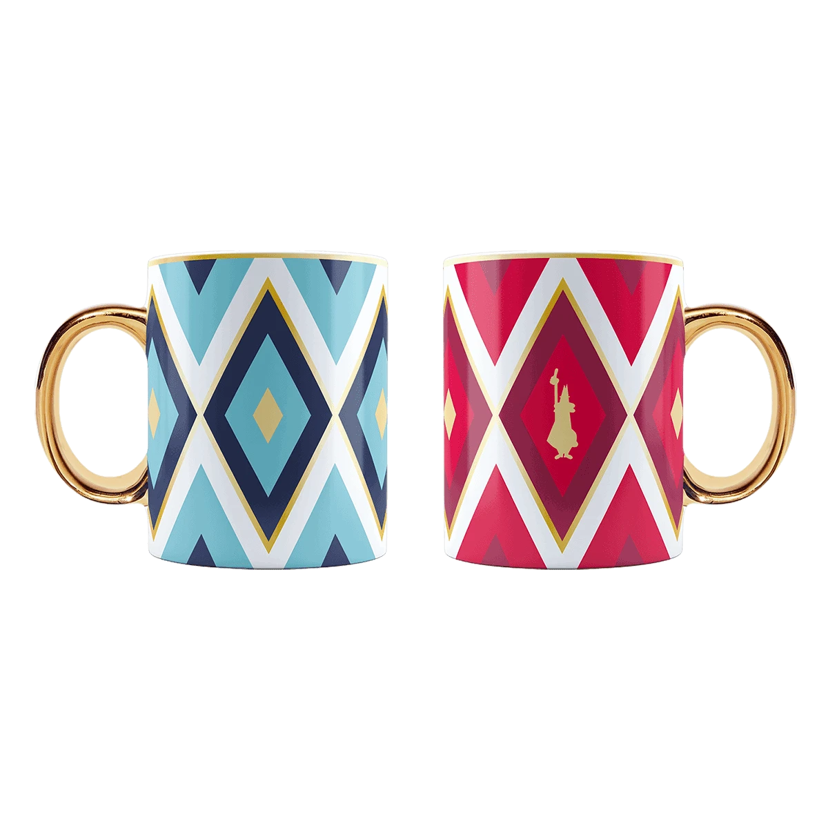 Il set delle due Mug colorate della collezione tombola con i brillanti blu e rosso, abbinati ai raffinati dettagli oro, danno un tocco di stile per la tua colazione con chi ami.