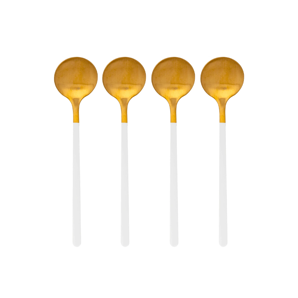 I cucchiaini della collezione Oro delle Api portano un tocco di scintillante raffinatezza alla vostra tavola grazie alla preziosa finitura oro accostata alla lucentezza del bianco.