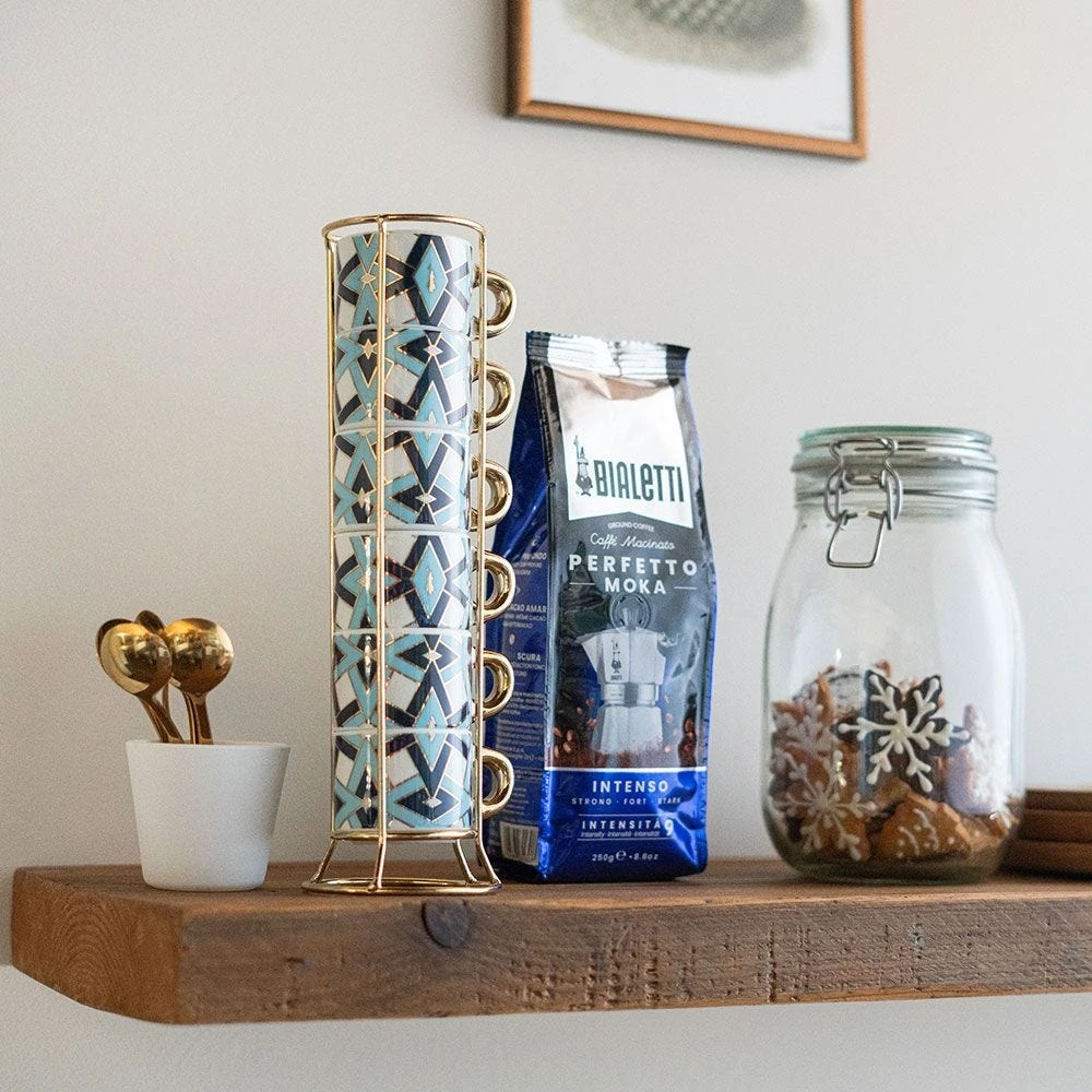 Il set pratico e ordinato di sei tazzine impilabili è ideale per condividere un buon caffè durante le serate in compagnia e per dare un tocco di stile alla vostra cucina. Perfetto sia per impreziosire con la giusta atmosfera le proprie pause caffè sia come idea regalo super glamour!