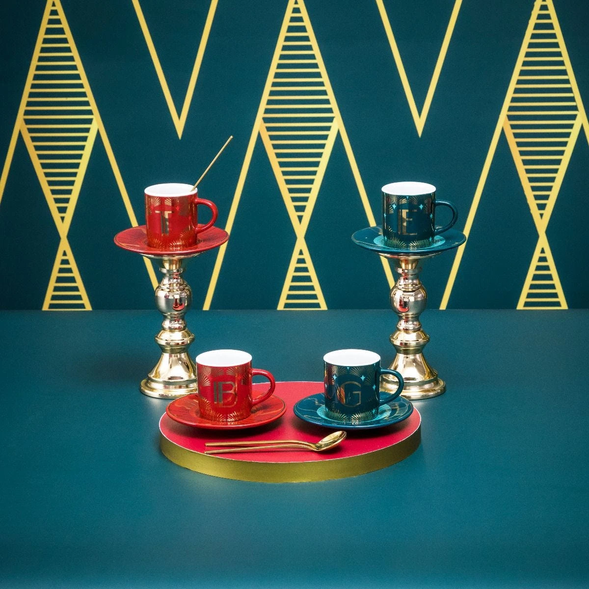 Le tazzine lettera nella nuova versione Déco Glamour, portano sulla tua tavola colori forti e vivaci impreziositi da un tocco d’oro.